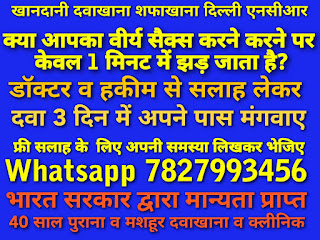 40 साल पुराना व मशहूर भारतीय आयुर्वेद क्लिनिक व दवाखाना दिल्ली एनसीआर । भारत सरकार द्वारा मान्यता प्राप्त। रजिस्ट्रेशन व लाइसेंस नंबर GZB 03660 Ayurvedic Unani Dawakhana Delhi बात करने लिए नीचे व्हाट्सप्प पर क्लिक कीजिये दिल्ली एनसीआर के मशहूर सेक्सोलॉजिस्ट से अपनी सेक्स समस्या के बारे में सही सलाह लीजिये। सेक्सोलॉजिस्ट से व्हाट्सप्प पर फ्री में चैट कीजिये। अपनी समस्या आवाज़ रिकॉर्ड करके या लिखकर भेजिए। आपको 1 घंटे के अंदर अंदर जवाब मिल जायेगा। लिंग लम्बा करने वाले सम्पर्क न करे क्योंकि लिंग किसी दवा या तेल से लम्बा नहीं होता व्हाट्सप्प के फोटो पर व्हाट्सप्प लिंक पर क्लिक कीजिये बात करने के लिए। या इस नंबर 7827993456 पर व्हाट्सप्प कीजिये लिंग लम्बा करने वाले सम्पर्क न करे क्योंकि लिंग किसी दवा या तेल से लम्बा नहीं होता Whatsapp Link व्हाट्सप्प लिंक दोस्तों क्या आपका सेक्स के दौरान वीर्य जल्दी झड़ जाता है,, क्या हस्तमैथुन करन